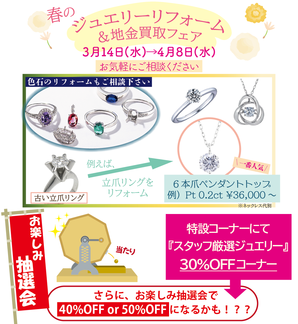 春のジュエリーリフォーム&地金買取フェアが14日から開催!